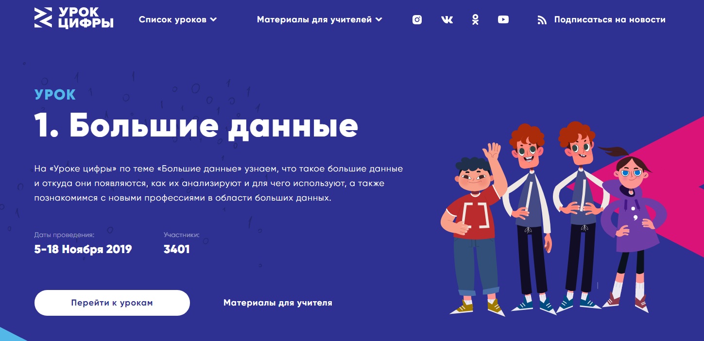 02.11.20195 ноября во всех школах страны стартует всероссийский проект «Урок цифры». ⠀ Открыла серию необычных уроков конференция «Урок цифры для учителей России». ⠀ Каждый из уроков направлен на развитие цифровых знаний и навыков. Первое занятие будет посвящено большим данным. ⠀ До конца учебного года пройдут уроки по темам: «Сети и облачные технологии», «Безопасность будущего», «Персональные помощники», «Искусственный интеллект и машинное обучение». ⠀ Подробнее о проекте можно узнать на сайте урокцифры.рф.