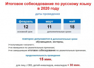 Согласно Порядку проведения государственной итоговой аттестации по образовательным программам основного общего образования 11.03.2020 состоится повторно итоговое собеседование в 9-ых классах.