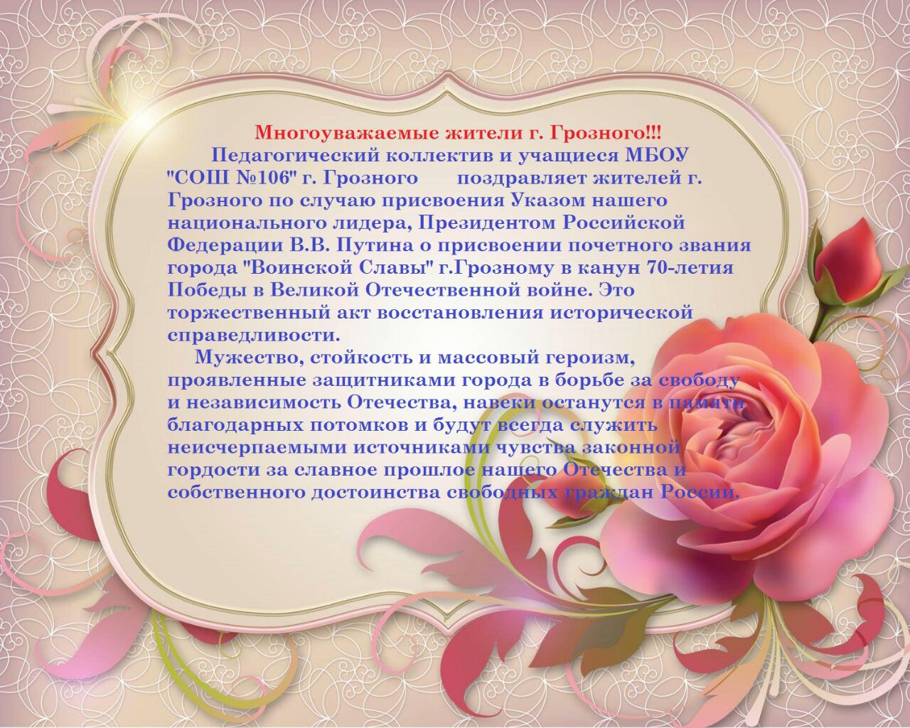 г. Грозный - город Воинской Славы!
