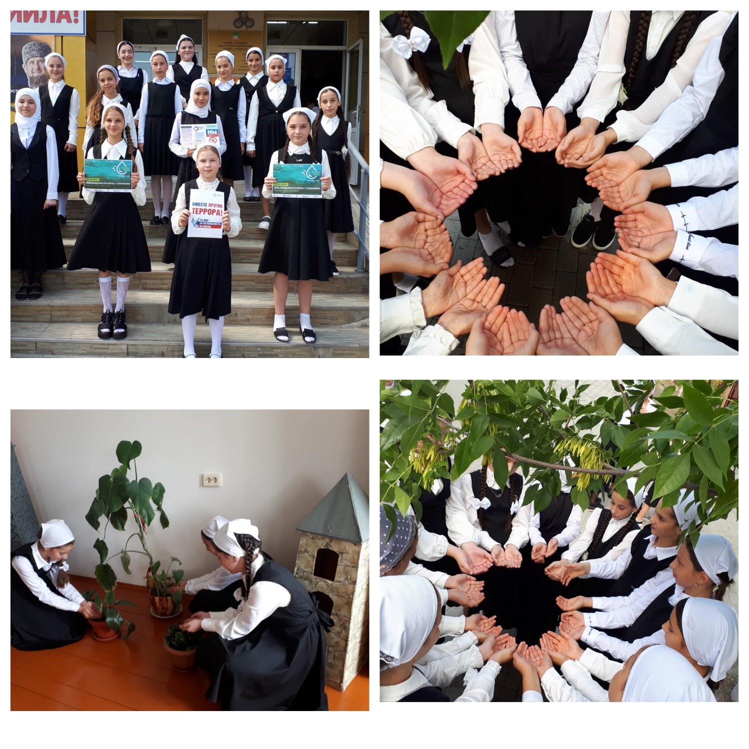 Учащиеся школы почтили память погибших людей через Всероссийскую акцию «Капля жизни». Символом трагически погибших стали цветы, растущие в школьном саду и в классных кабинетах. Наполнив ладони водой, они напоили живительной влагой растения.