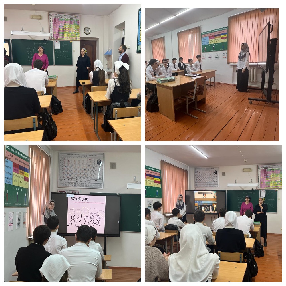 25.01.2023С целью совершенствования системы профориентации и осуществления выбора профессии с учетом интересов и склонностей выпускников, в рамках взаимодействия с ВУЗами в МБОУ «СОШ №106» г. Грозного прошла профориентационная встреча старшеклассников 10-11-х классов с представителями ЧГПУ, факультета иностранных языков и международной коммуникации, под руководством заведующей кафедрой восточных языков Рамазановой Р.Т. и заведующей кафедрой европейских языков Яхъяевой А.А..