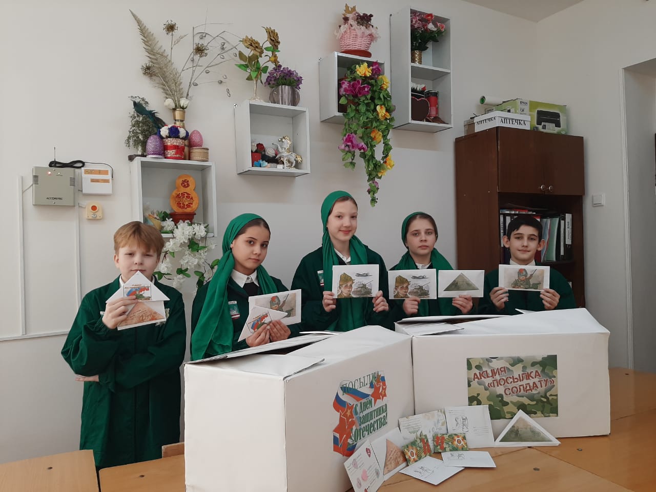 Письма для солдат - добрая весточка и благодарность за мирное небо, которое они защищают.Свои письма ребята украсили рисунками, георгиевскими ленточками и оформили их в виде писем-треугольников. В письмах школьники поздравили военнослужащих и мобилизованных с 23 февраля, выразили слова благодарности всем тем, кто сейчас исполняет свой воинский долг, пожелали им успехов в выполнении боевых задач, мужества, стойкости, и возвращения домой живыми и здоровыми.Письма сопровождались рисунками, которые должны напоминать солдатам о родном доме, о близких и любимых людях.