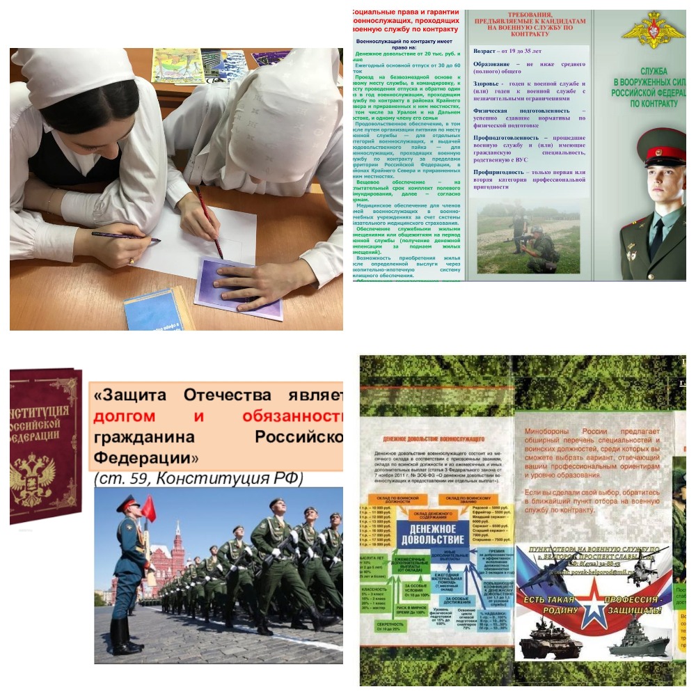 15.02.202415 февраля 2024 года в рамках военно-патриотического месячника "Есть такая професссия - Родину защищать!" активисты МБОУ "СОШ №106" г. Грозного провели профориентационную акцию «Моя профессия – мое будущее», направленную на повышение профессионального самоопределения школьников. Цель акции – как можно раньше познакомить подрастающее поколение с основами и особенностями выбора профессии. В рамках акции ребята подготовили буклеты для выпускников школы на темы "На пороге выбора профессии", "Выпускнику школы", а также буклеты с информацией о престиже выбора военной профессии.