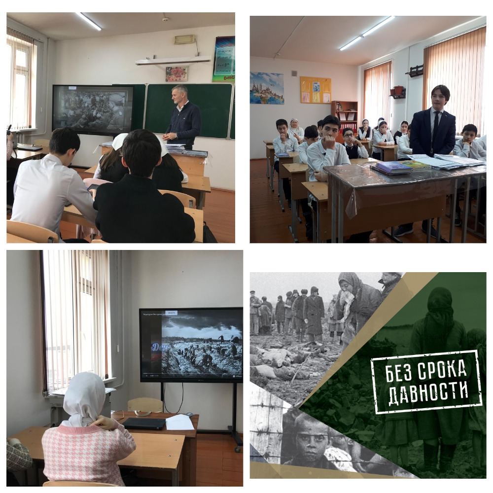 19 апреля в МБОУ "СОШ №106" г. Грозного проведен единый урок «Без срока давности» в рамках Дня единых действий в память о геноциде советского народа нацистами и их пособниками в годы Великой Отечественной войны.