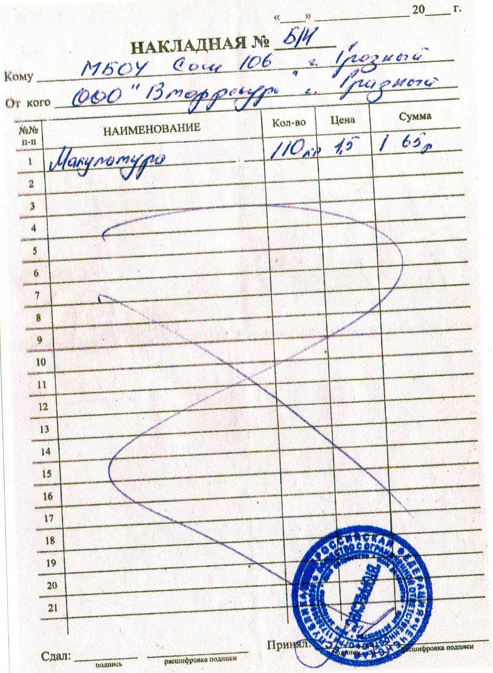 МБОУ "СОШ №106" г. Грозного ежегодно принимает участие в данной акции. Так и в этом году мы сдали 110 кг макулатуры, собранной учащимися школы