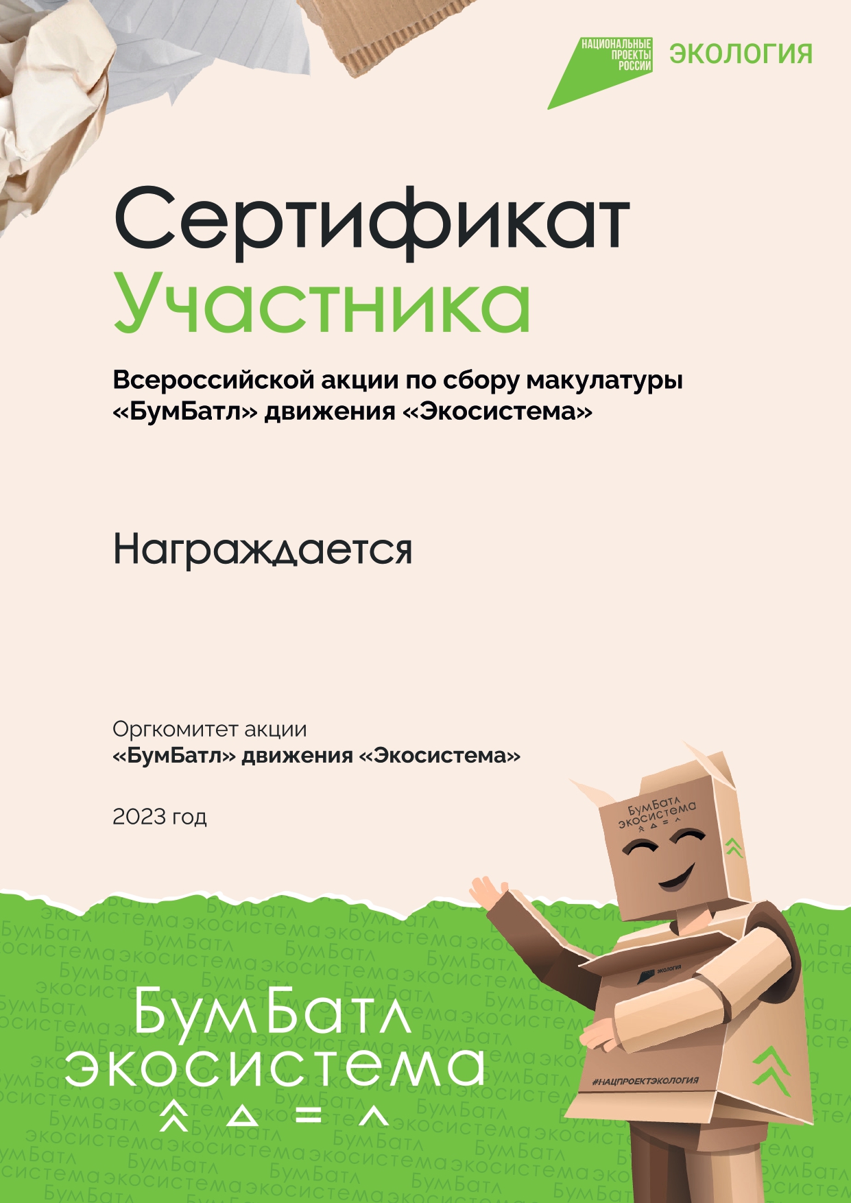08.11.2023«БумБатл» — это Всероссийская акция по сбору макулатуры в поддержку национального проекта «Экология», который реализуется по решению Президента. В новом сезоне акция проходит под эгидой Всероссийского экологического движения «Экосистема». «БумБатл» дает возможность проявить заботу о природе через сбор и сортировку бумаги. Но, как и любой батл, — это еще и соревнование по количеству собранной макулатуры, где можно побороться за первенство в командном или индивидуальном зачете.