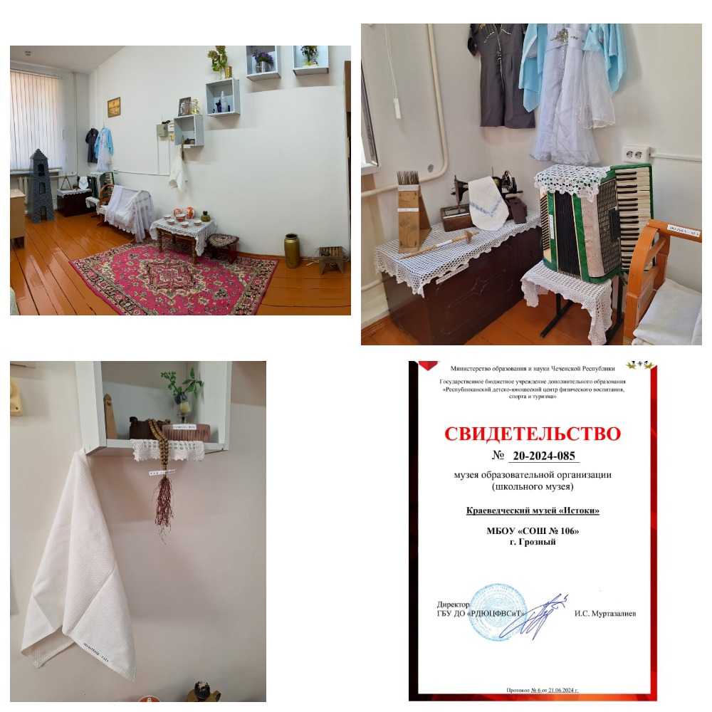 01.07.2024В рамках реализации национального проекта «Образование» в МБОУ«СОШ N 106" г. Грозного 21 июня 2024 года состоялось открытие школьного краеведческого музея "Истоки". Цель открытия любого музея заключается в том, чтобы каждое новое поколение чтило и бережно хранило то бесценное наследие, которое досталось ему от предков. К открытию музея долго и скрупулезно готовились: собирали материалы, предметы быта и т.д..