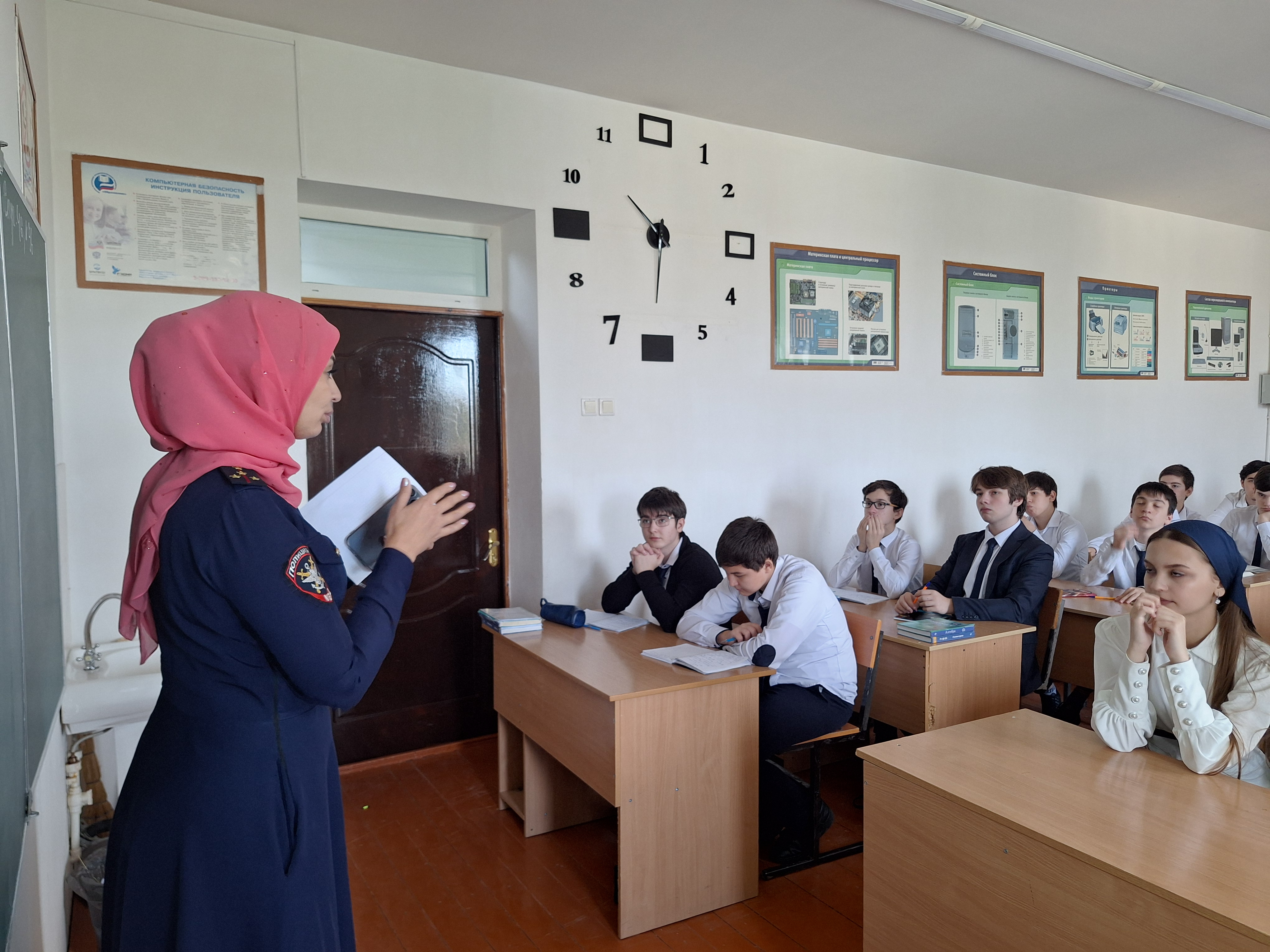 26.09.2024Сегодня в нашей школе состоялась профилактическая беседа обучающихся с инспектором ОПДН ПДН Грозненского ЛО МВД России на транспорте капитаном полиции Тимирсултановой О.А.. Данная встреча с подростками и проведение плановых профилактических бесед, это неотъемлемая часть совместной деятельности педагогов и инспектора ПДН. В разговоре с обучающимися инспектор затронула следующие темы: "Административные правонарушения и преступления среди несовершеннолетних", "Здоровый образ жизни, безопасность", "Железная дорога - зона повышенной опасности", были затронуты вопросы защиты интересов детей . В своей беседе инспектор коснулась вопросов ответственности за совершение таких преступлений, как кража, грабеж, вымогательство, причинение телесных повреждений. Подросткам было разъяснено, с каких лет наступает уголовная ответственность, какие наказания применяются за совершение тех или иных правонарушений. Так же было обращено особое внимание о вреде употребления спиртных напитков, табака, других вредных веществ. В разговоре с обучающимися сотрудник полиции рассказала о том, как не стать жертвой преступления: были подняты вопросы безопасности жизни и здоровья, а также ответственности за сохранность личных вещей. В ходе беседы ребята задавали вопросы, встреча прошла в лёгкой дружеской обстановке.