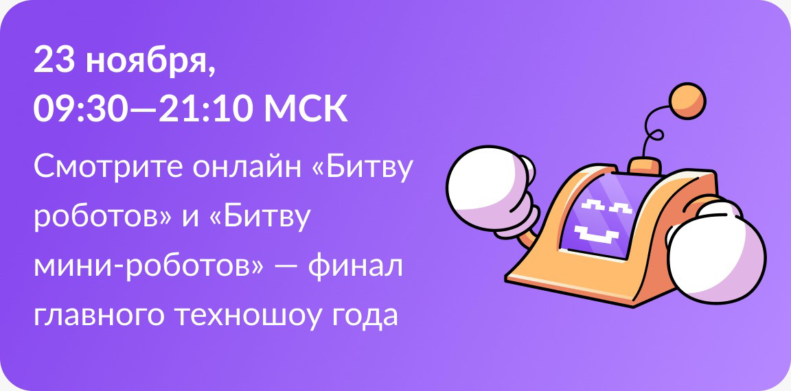 Минцифры России в соответствии с распоряжением Правительства РоссийскойФедерации от 11 апреля 2023 г. № 889-р сообщает о проведении полуфинала и финалаМеждународного чемпионата по битве роботов (далее
