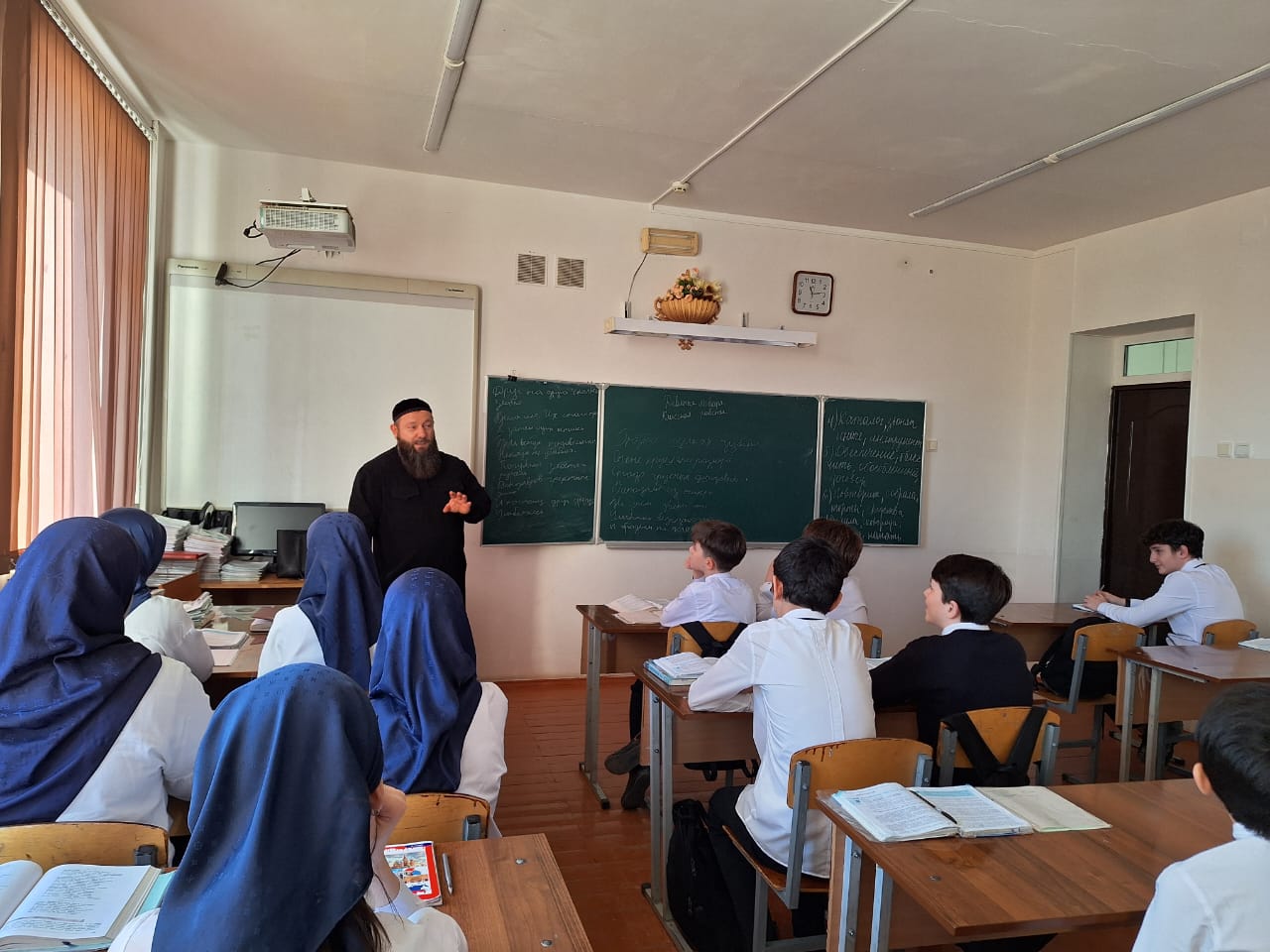 Педагог-организатор по ДНВ Алиев Р.А. рассказал обучающимся о том, что Ислам категорически запрещает все виды насилия, в том числе и насилие над собственным телом. Также, как и убийство других людей, самоубийство относится к категории тягчайших преступлений. Аллах говорит в Коране: «Не убивайте самих себя! Воистину, Аллах Милостив к вам (запрещая вам это)»