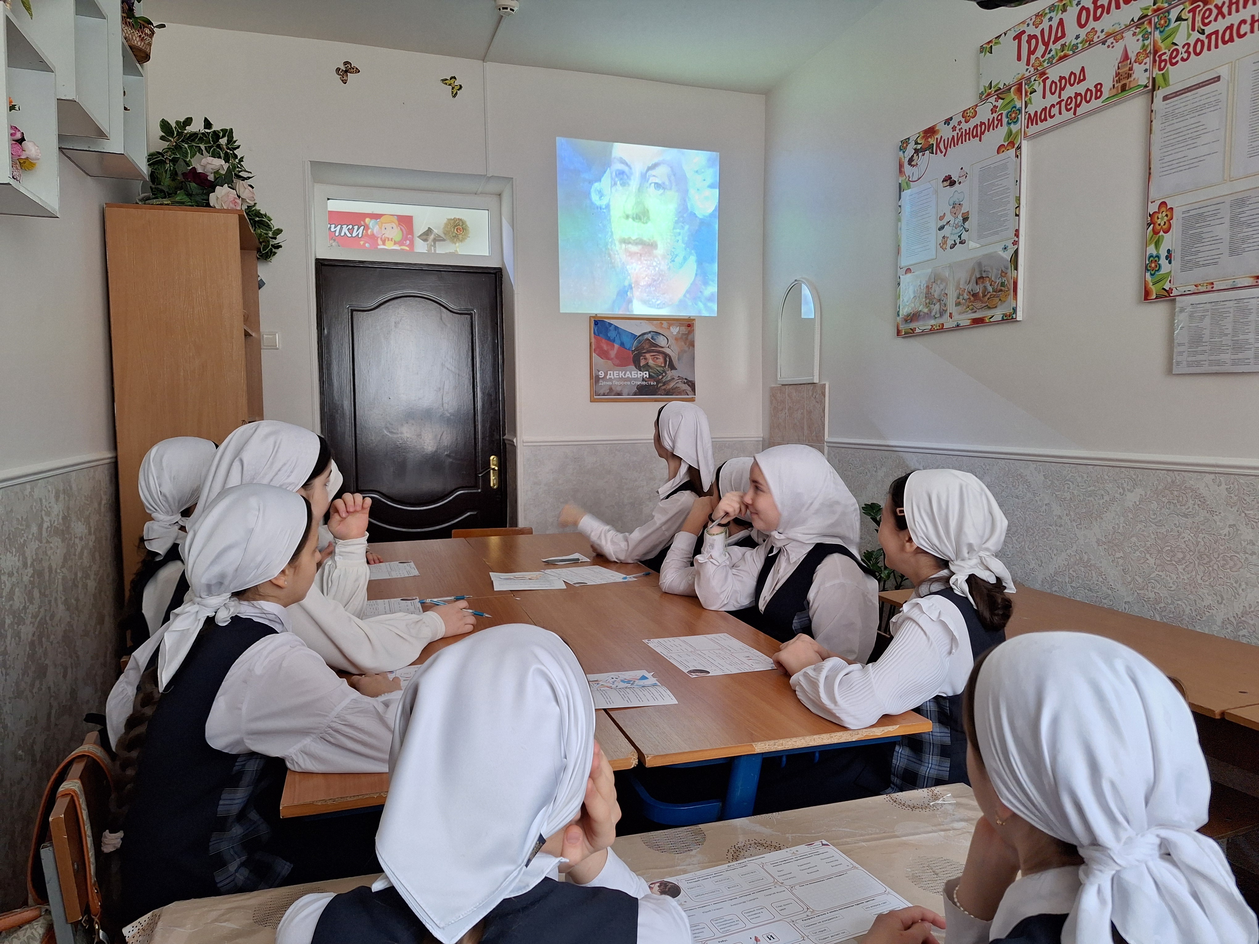 09.12.2025В МБОУ "СОШ № 106" г. Грозного в рамках Дня героев Отечества прошел урок мужества «Гордимся славою героев» с элементами игры. Заместитель директора по воспитательной работе Габаева М.З. рассказала учащимся об истории праздника и тех, кого чествуют в этот день. Ребята узнали, что наш народ всегда защищал свою землю, и вспомнили выдающихся полководцев русской армии. В ходе встречи также говорили о Героях современной России, которые ценой собственной жизни сражались и сражаются за наше мирное будущее. Особое внимание уделили землякам, участвующим в СВО. Минутой молчания почтили память погибших воинов. К мероприятию был подготовлен фильм «О Родине, о мужестве, о славе».