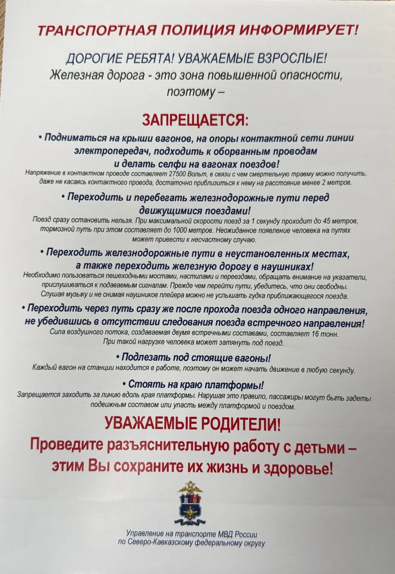 Транспортная полиция информирует!